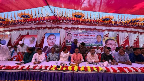 ফরিদপুরের বোয়ালমারী উপজেলার সাতৈর বাজারে অবস্থিত সার্বজনীন দূগার্ মন্দিরে এ বছর দূগোর্ৎসব পালন অনিশ্চিত হয়ে পড়েছিল। গত বুধবার বাজারের হিন্দু ব্যবসায়ীরা জানান, এ বছর আমরা বাজারের মন্দিরে পূজা করতে আগ্রহী ছিলাম না। স্থানীয় নেতাদের অনুরোধে দায়সাড়া ভাবে পালিত হচ্ছে এবারের দূগোর্ৎসব। কারণ হিসাবে তারা জানান, হাজার বছরের ঐতিহ্য সাতৈর বাজার সার্বজনীন দূগার্ মন্দির। প্রতি বছর এখানে সাড়ম্বরে দূগোর্ৎসব পালিত হয়ে আসছে। অথচ এবার মন্দিরে পূজা পালনের পরিবেশ নাই। মন্দিরের সাথেই মাছের বাজার করা হয়েছে। পাকা স্থাপনা করায় একদিকে মন্দিরে সৌন্দর্যে ব্যাঘাত সৃষ্টি হয়েছে; অপর দিকে মাছের বাজারের কারণে দূর্গন্ধ-আবর্জনা-মশা-মাছি ইত্যাদি ধমর্ী উৎসব পালনে বাঁধার সৃষ্টি করছে। মাছের বাজারটি এখান থেকে অন্যত্র সরিয়ে নেবার জন্য আমরা প্রশাসনকে অনেক অনুরোধ করেছি, কিন্তু আমাদের কথায় কর্ণপাত করা হয়নি। মোট কথা এখন এই মন্দিরে পূজা করার মত কোন পরিবেশ নাই। মাছ বাজারের স্থাপনাটি মন্দির সংলগ্ন হওয়ায় পূজায় আগত ভক্ত-অনুরাগীদের চলাফেরার জন্য কোন খোলা জায়গা অবশিষ্ট নাই। এমনটি জানালেন বাজারের ব্যবসায়ী স্বপন সাহা, অপূর্ব সাহাসহ অনেক হিন্দু ব্যবসায়ী। বাজারের অন্যতম ব্যবসায়ী, বাংলাদেশ জাতীয় হিন্দু মহাজোট নেতা সুবাস সাহা বলেন, মন্দিরের সামনে মাছ বাজারের পাকা ঘর তৈরী করায় এ্খানে কোন ধমর্ীয় অনুষ্ঠানাদি পালন করা যাচ্ছে না। তারপরও স্থানীয় নেতৃবৃন্দের অনুরোধে পূজা পালন করা হচ্ছে। আমি সংশ্লিষ্ট কর্তৃপক্ষের নিকট অনেুরোধ করছি, অনতিবিলম্বে স্থাপনাটি অন্যত্র সরিয়ে নিয়ে আমাদেরকে ধমর্ীয় অনুষ্ঠানি পালনের সুযোগ দেওয়া হোক।